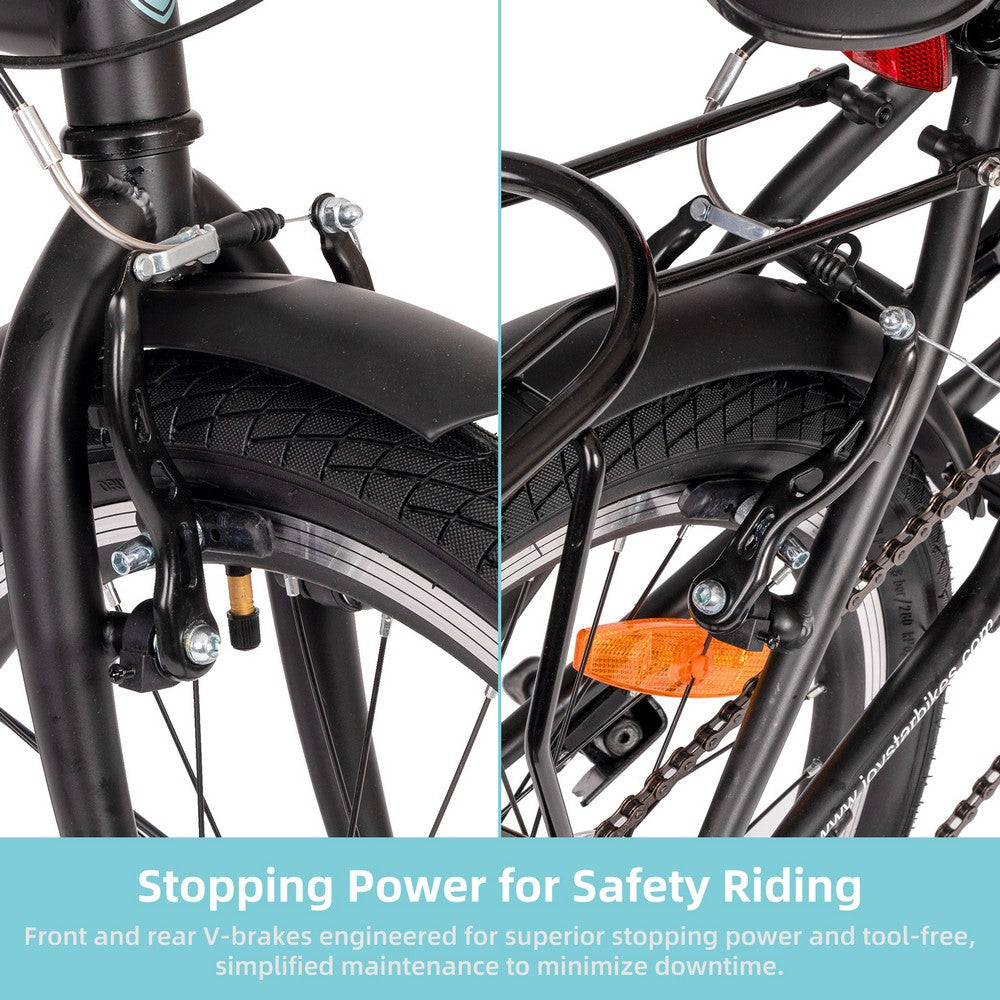 • Reliable Safety: Front and rear V-brakes are engineered for superior stopping power and tool-free, simplified maintenance to minimize downtime and keep you on the road.